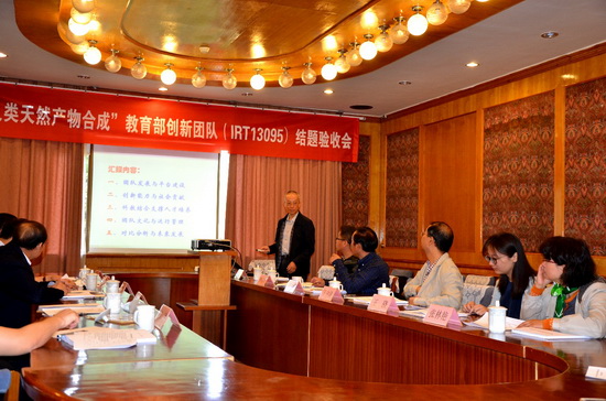 张克勤副校长首先代表学校致欢迎词,简单介绍了我校及“天然产物及类天然产物合成”教育部创新团队的基本情况。教育部项目主管王骁老师介绍了本次教育部创新团队结题验收的目的及评价指标体系。创新团队带头人张洪彬教授从团队基本信息、平台建设与团队发展、创新能力与社会贡献、科教结合与人才培养、团队文化与运行管理、以及对比分析与未来发展等方面向专家组作了详细汇报,并接受了专家组的质询与答疑。专家组通过认真仔细的评议,对教育部创新团队建设期内取得的成绩给予了充分肯定和高度评价。