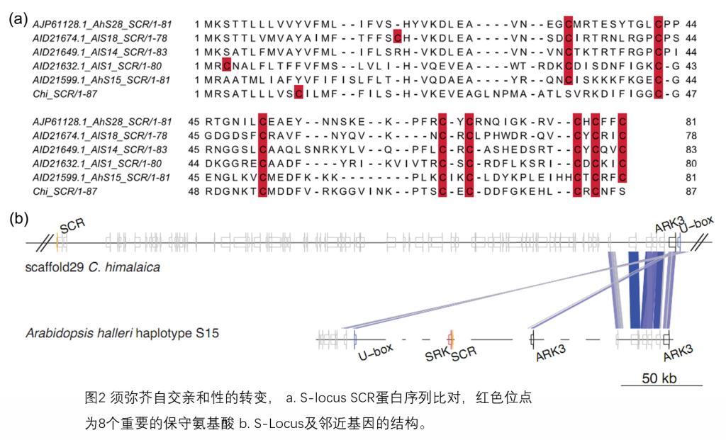 该研究对青藏高原特有分布的拟南芥近缘种须弥芥(Crucihimalaya himalaica)进行了基因组适应性进化研究。研究结合二代和三代高通量测序技术,组装得到了234.72Mb的须弥芥基因组,包括 27019个预测基因。系统发育分析显示须弥芥与荠菜最近缘,分化时间大约为8.8-12.2个百万年,而与拟南芥属分化时间约为12.7-17.2个百万年。青藏高原在上新世晚期至更新世快速隆升之后,须弥芥的LTR反转录转座子发生了明显的扩张,说明转座子的爆发可能与环境适应有关。须弥芥基因组中抗病相关的基因发生了缩减,而与泛素介导的蛋白水解和DNA损伤修复相关基因发生了明显的扩张和受到强烈的自然选择,这与青藏高原低温、强紫外线等极端环境因素有关。此外,须弥芥中自交亲和相关基因变为假基因或丢失,这是导致须弥芥自交亲和的根本原因,也是该物种适应青藏高原传粉昆虫少的一种策略。综上,该研究为青藏高原植物适应极端环境的分子机制提供了新的线索,同时该研究发现植物与动物对青藏高原的适应机制既有相似点(DNA修复途径、抗病途径),也有不同点(植物自交亲和性、植物激素途径)。